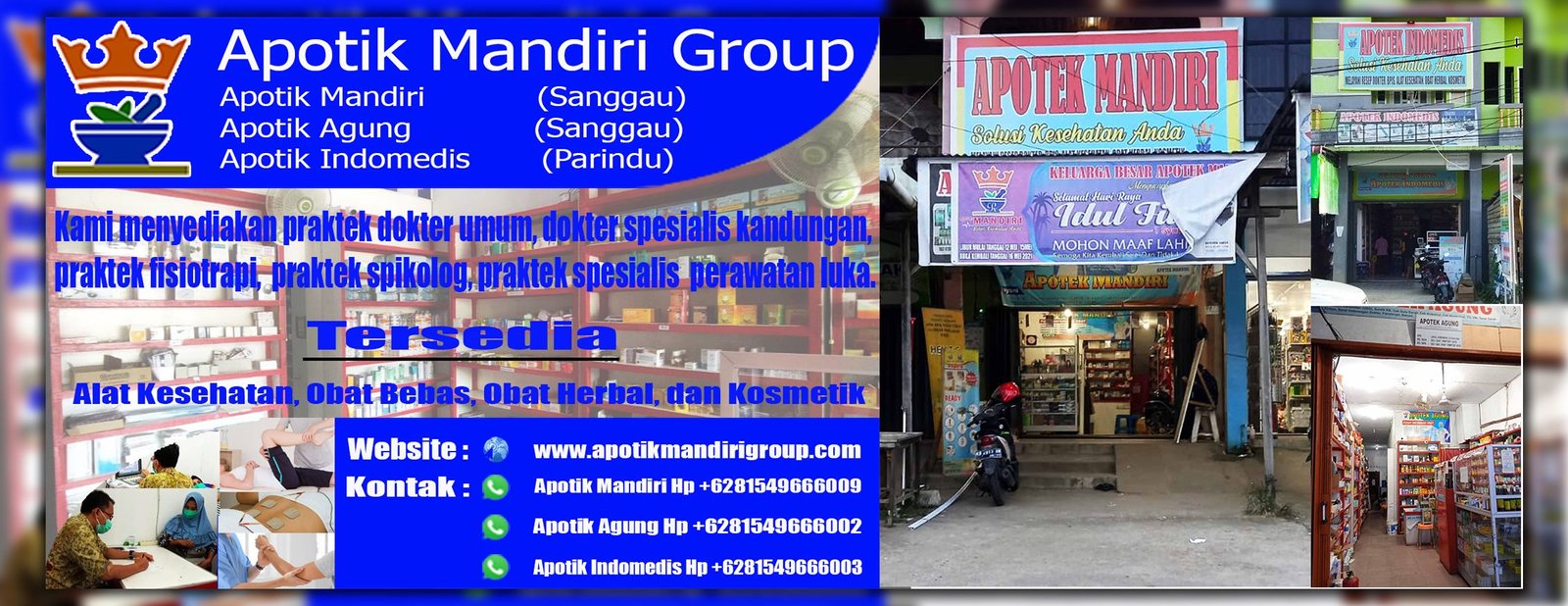 Apotek Mandiri Group membuka Tiga cabang Apotik di Kabupaten Sanggau. Silahkan hubungi alamat yang terdekat dengan domisili anda. Bagi kami pelayanan kepada pelanggan adalah nomor satu, karena kesehatan adalah prioritas utama semua makhluk hidup.